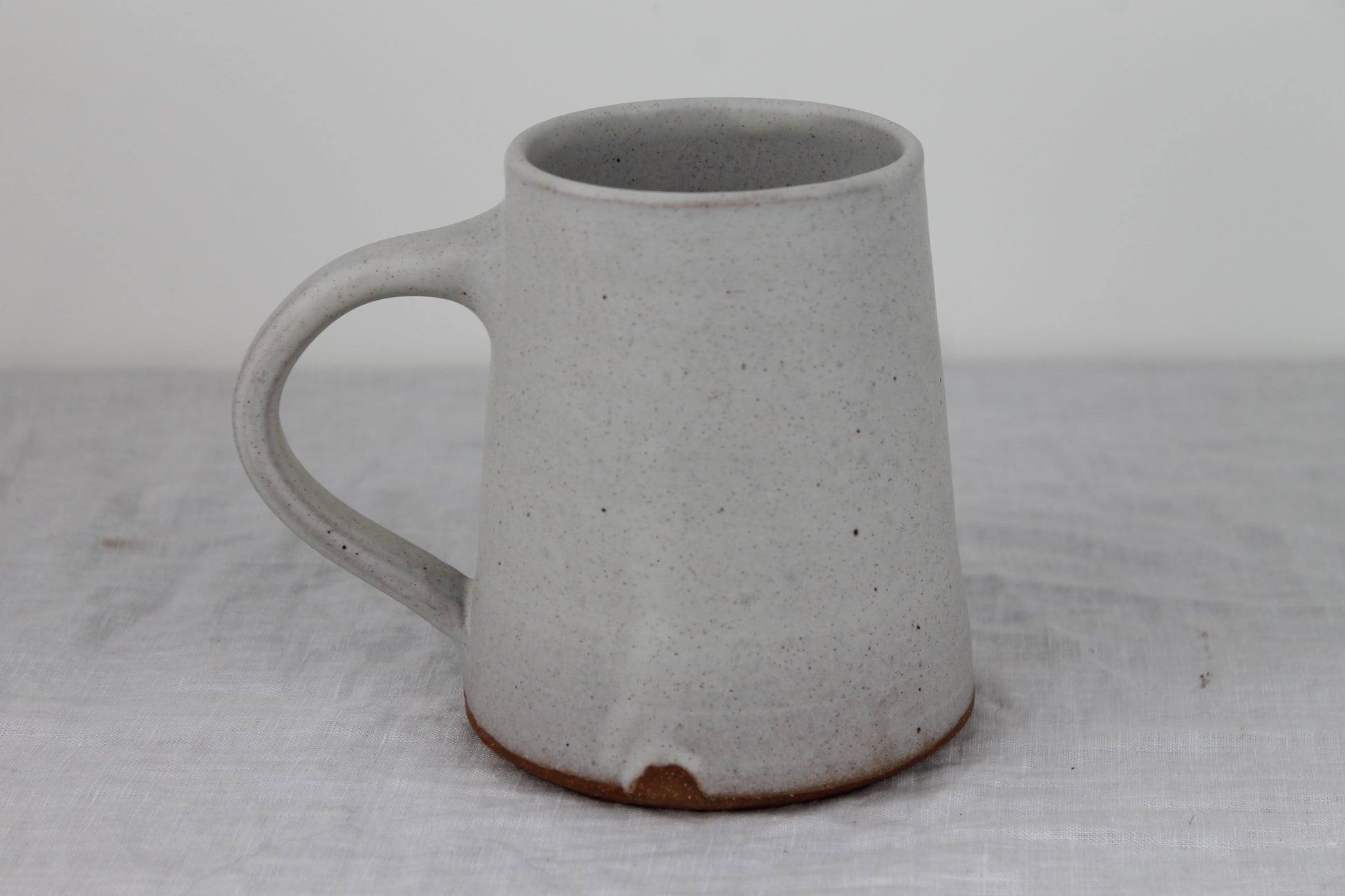 Each mug is hand thrown on the wheel and glazed in a matte white slightly speckled glaze. Perfect for a medium to large amount of coffee or tea.