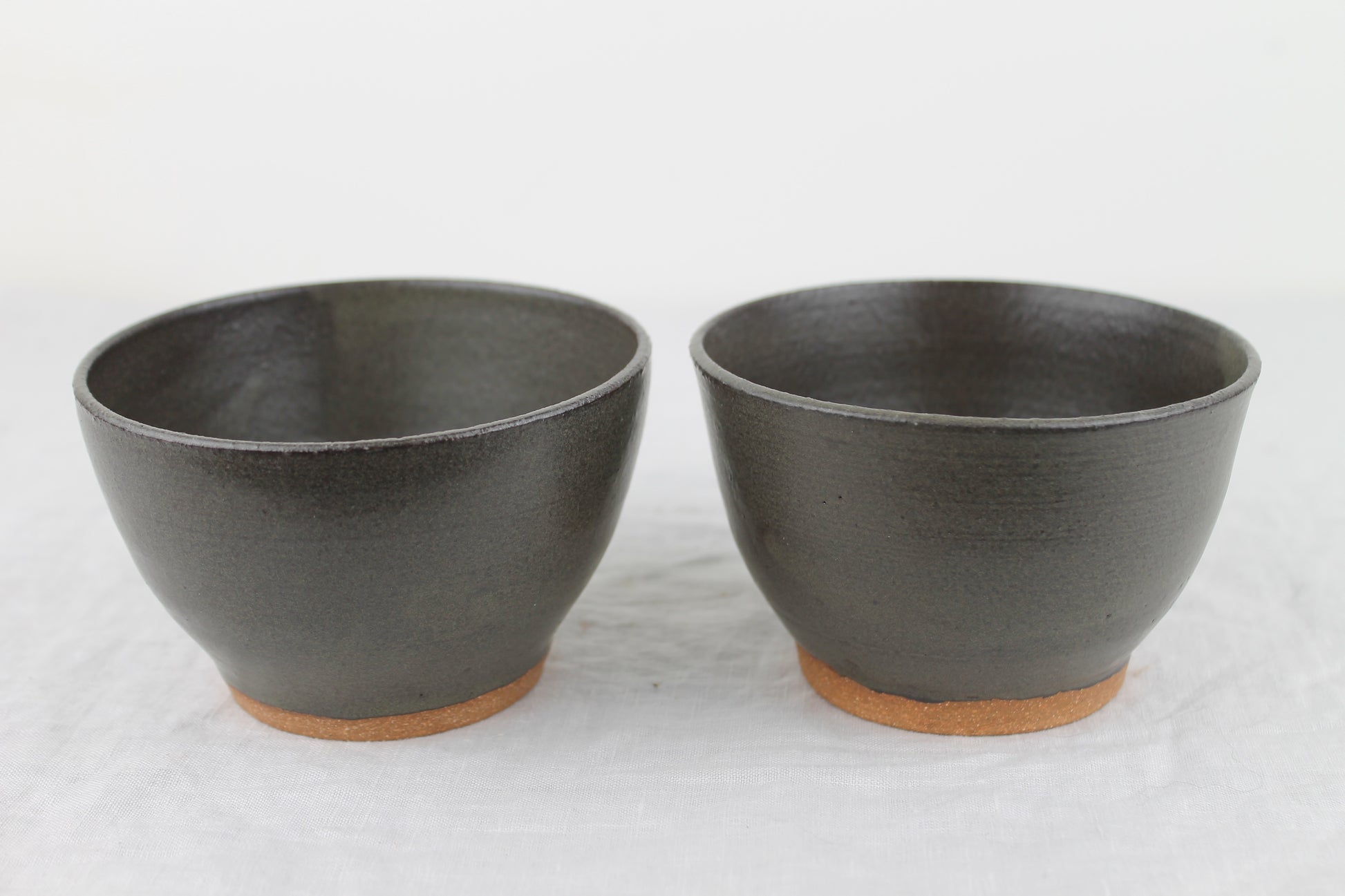 A pair of small perfect for snacks, side salads, ice cream, or dips. Each bowl is hand thrown on the wheel and glazed in a satin dark grey glaze.